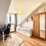 Apartament Psie Pole Apartment comprises a balcony and a sitting area, appointed with a work desk. With a television available, the accommodation allows guests to enjoy their leisure time to the fullest. To ensure your comfort, a separate toilet and a shower are provided at the property.